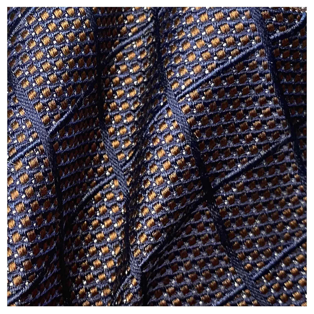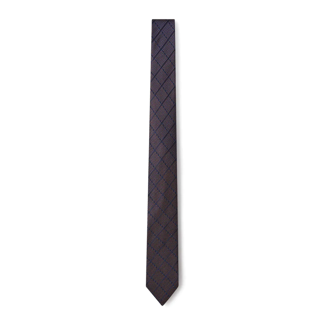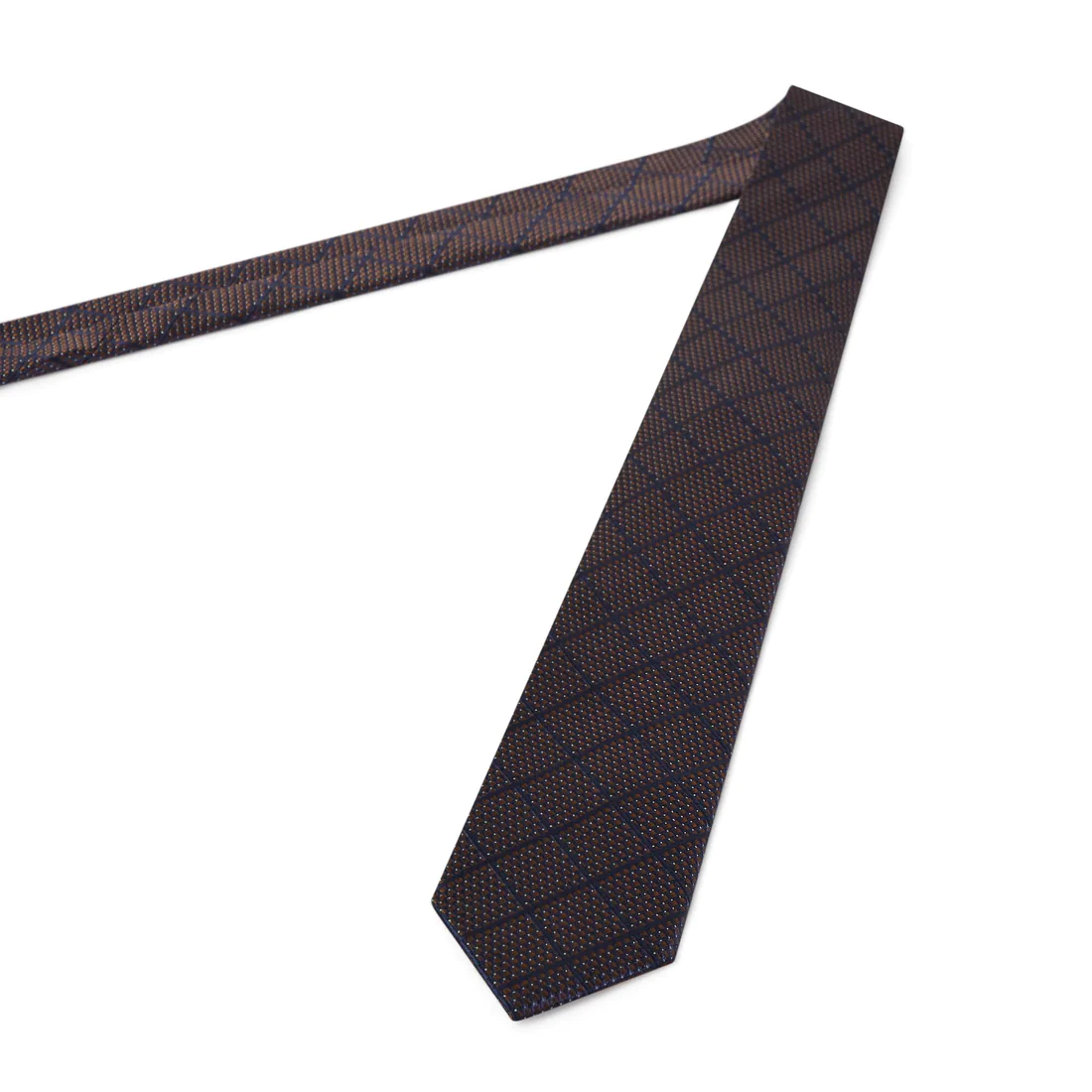• Cravate à motif carreau bronze et marine.