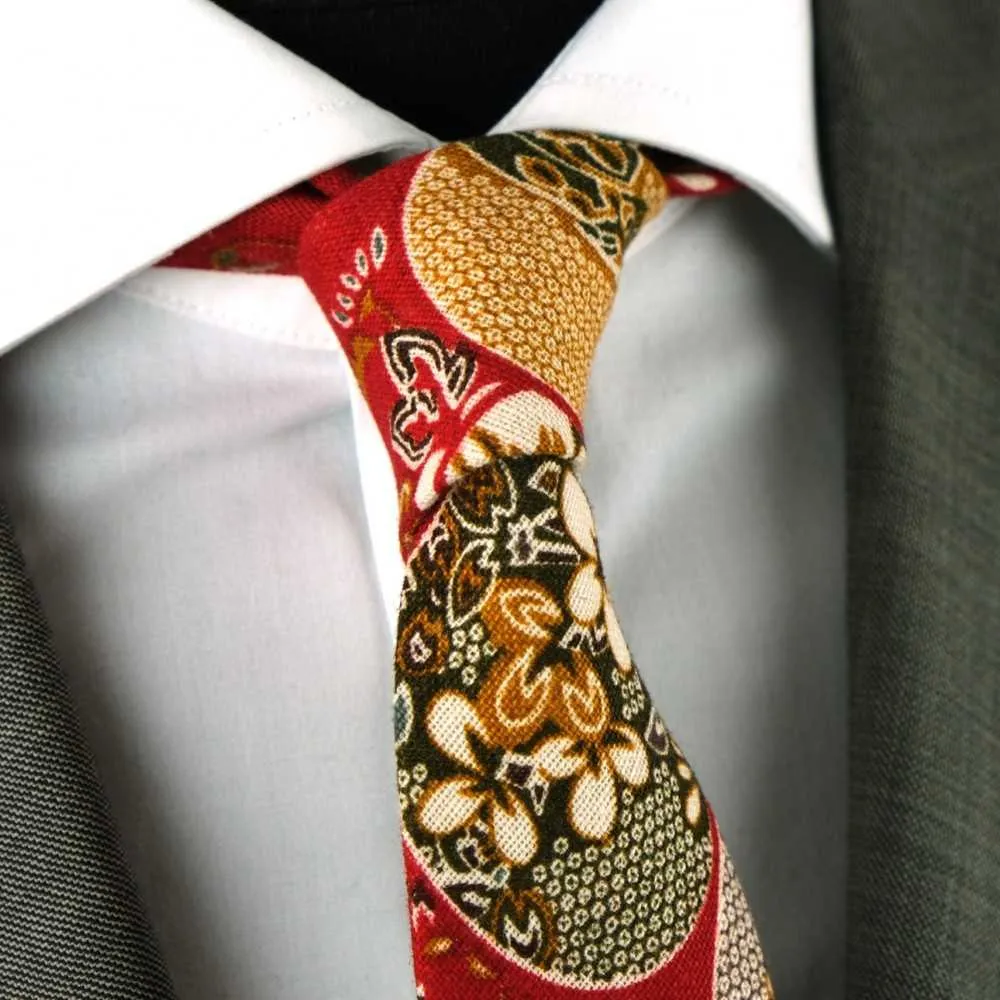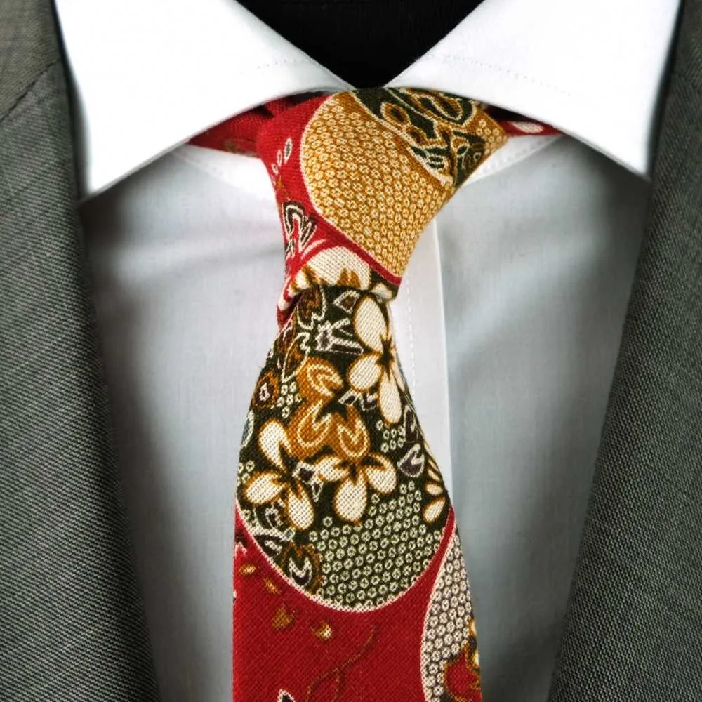 CRAVATE À GRAND MOTIF FLEURI EN COTON. ROUGE