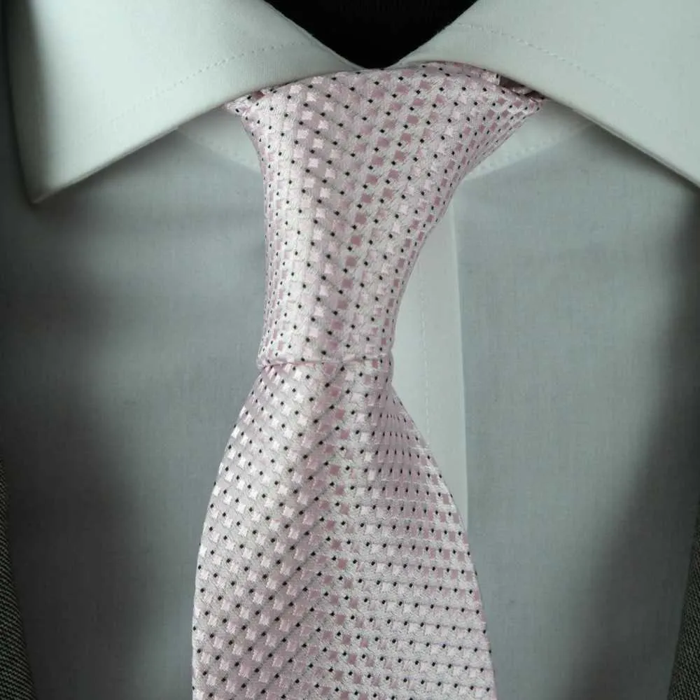 CRAVATE CLASSIQUE HOMME. ROSE À FINS POIS NOIRS