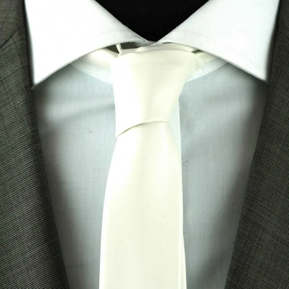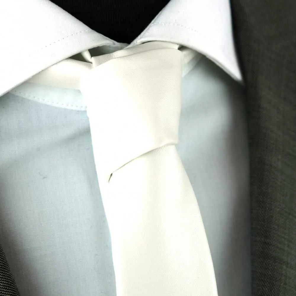 CRAVATE DE MODE EN CUIR PU. BLANC UNI
