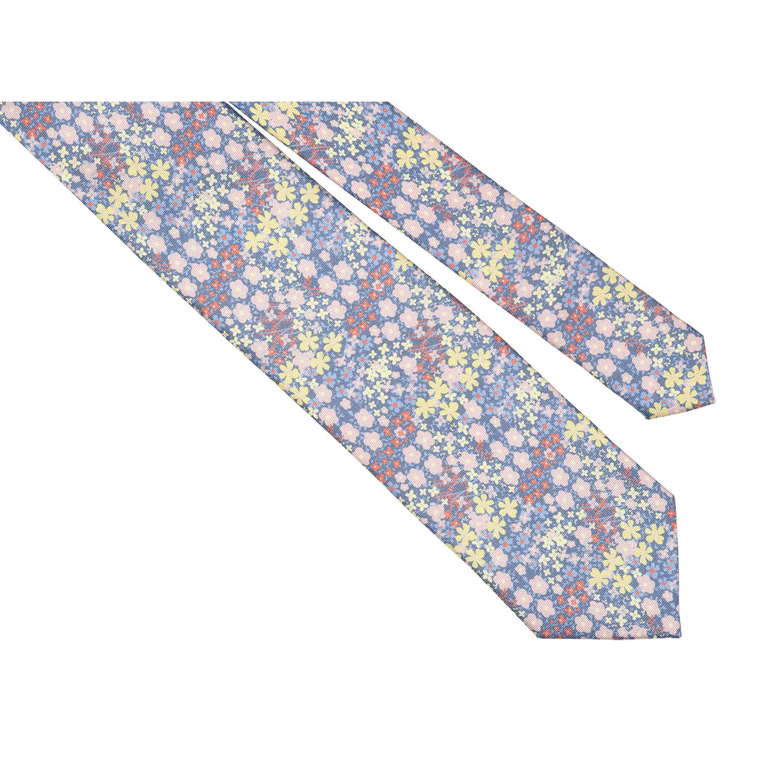 CRAVATE HOMME CHAMP DE FLEURS BLEU MARINE / ROSE CLAIR