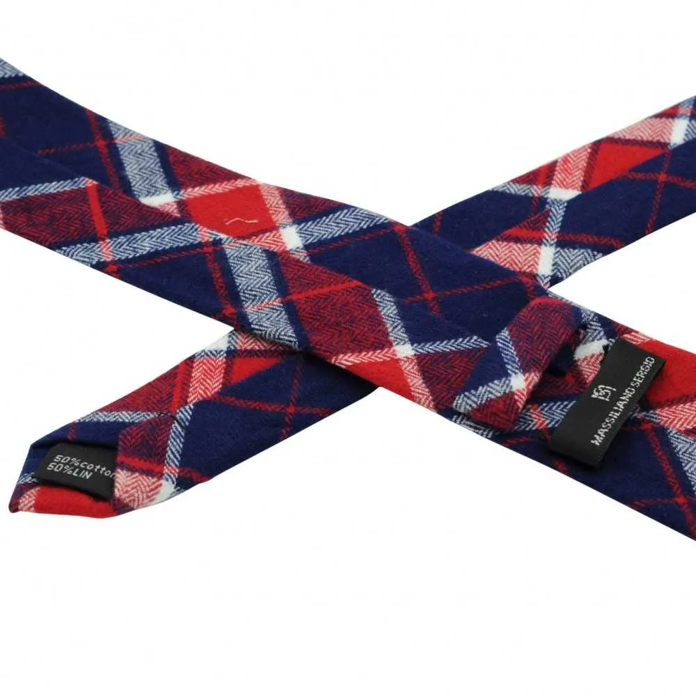 CRAVATE HOMME COTON-LIN À CARREAUX. ROUGE ET BLEU