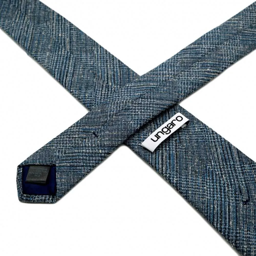CRAVATE HOMME DE MARQUE UNGARO. BLEU GRIS CHINÉ EN COTON ET SOIE