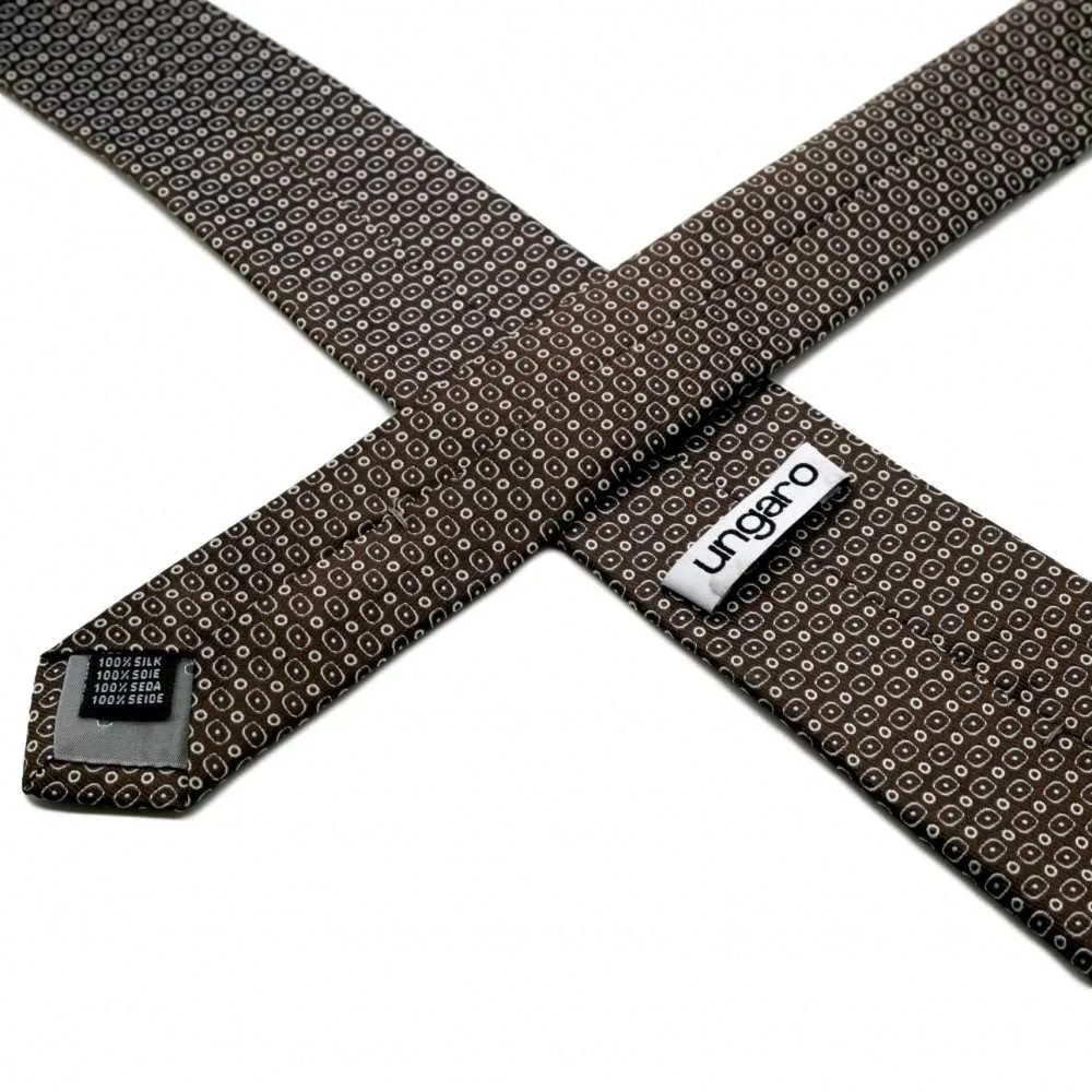 CRAVATE HOMME DE MARQUE UNGARO. MARRON À MOTIFS ARRONDIS