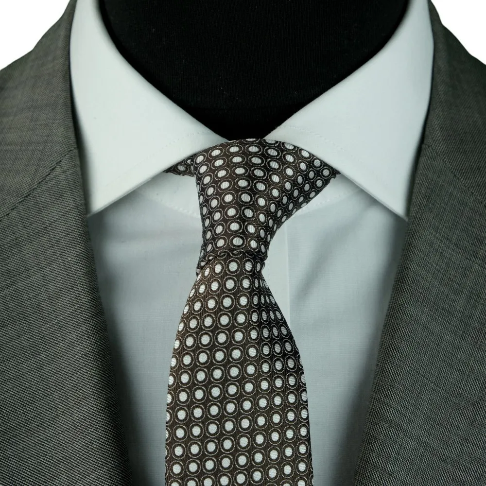 CRAVATE HOMME DE MARQUE UNGARO. MARRON À MOTIFS RONDS