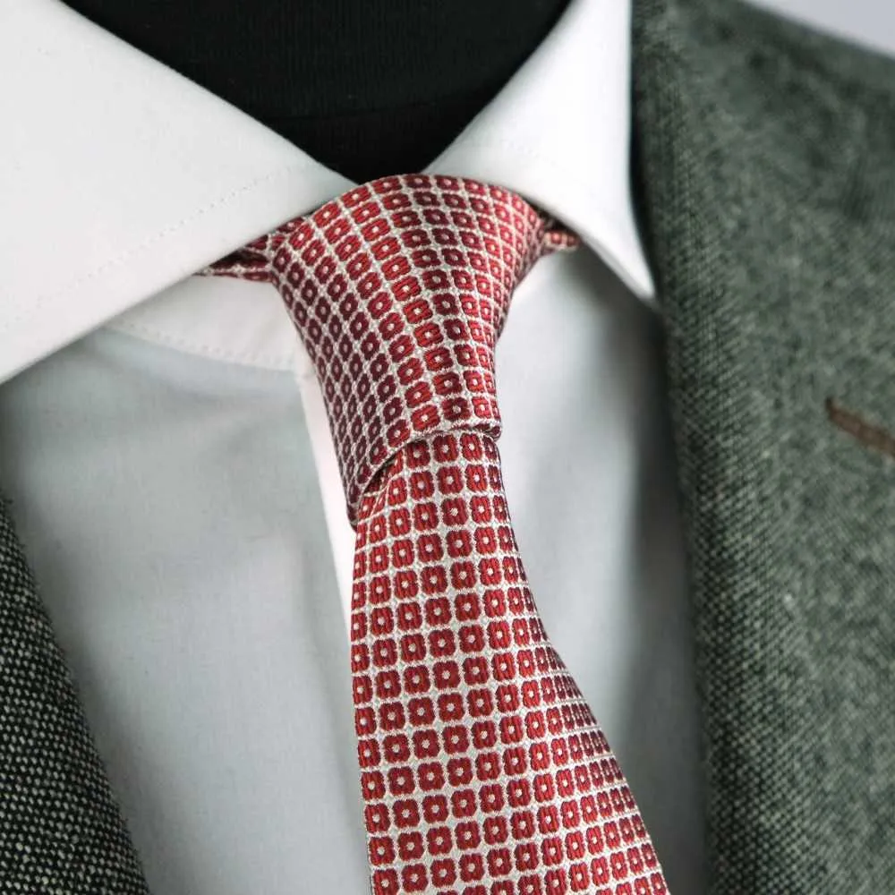 CRAVATE HOMME DE MARQUE UNGARO. ROUGE À MOTIFS CARRÉS