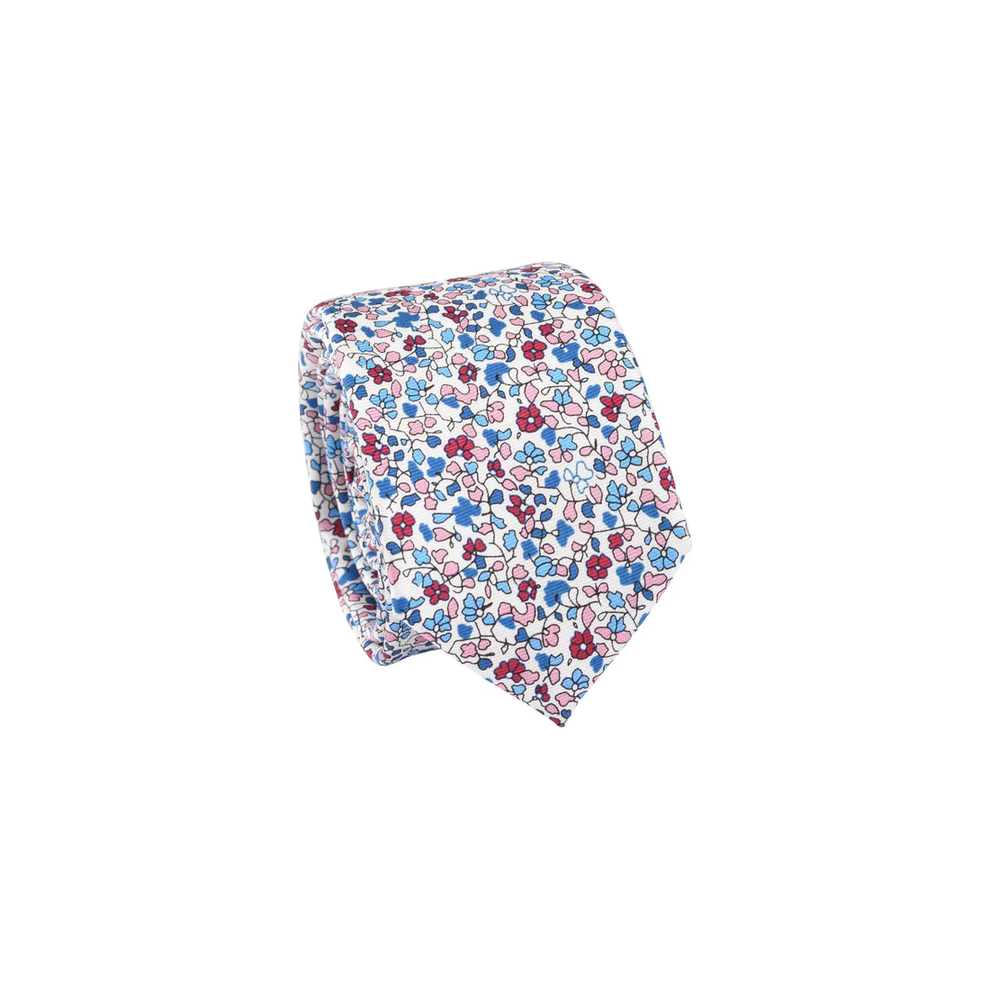 CRAVATE HOMME PETITES FLEURS ROSE / BLEU