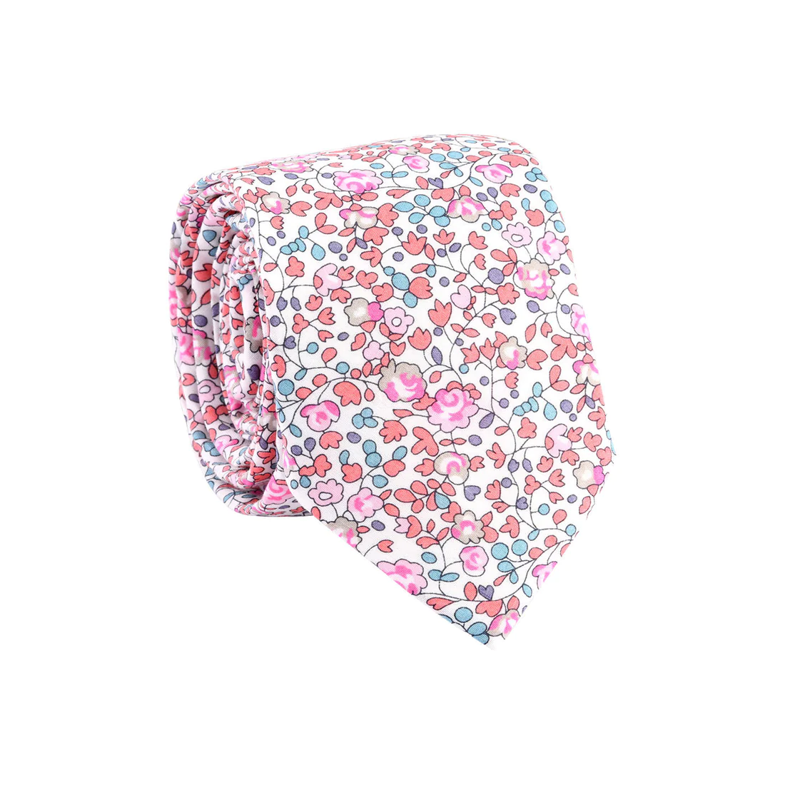 CRAVATE HOMME TISSU LIBERTY ELOISE PECHE / ROSE
