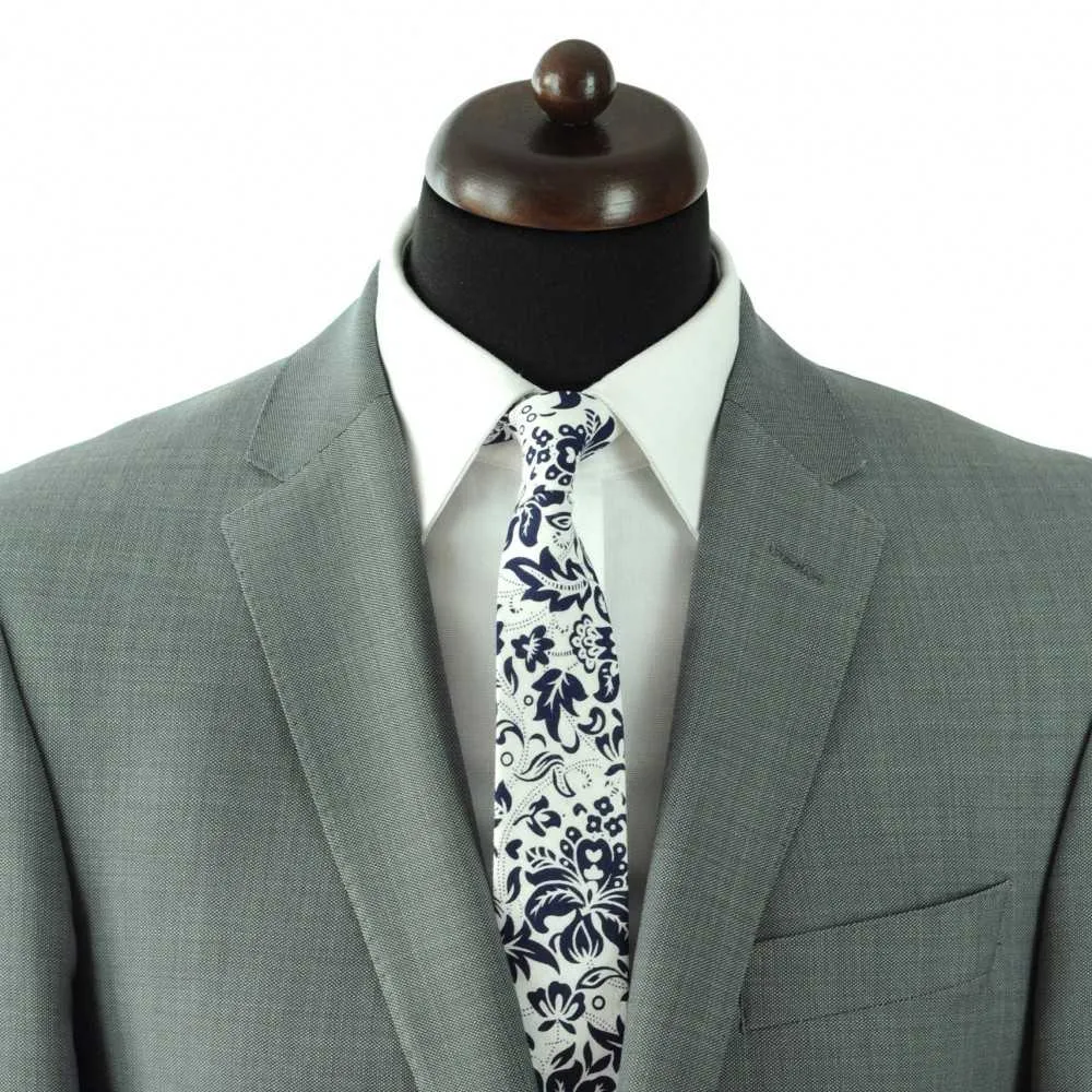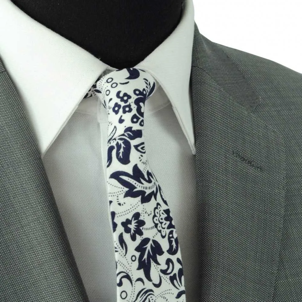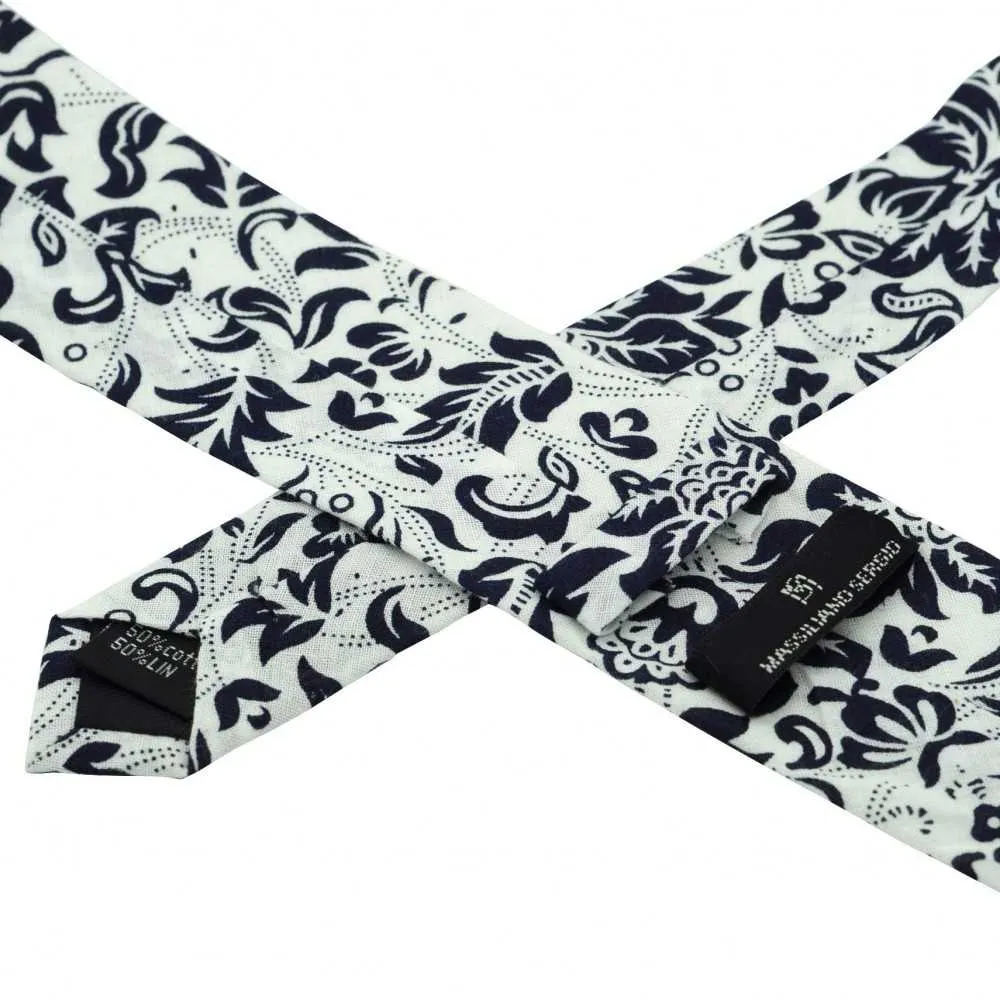 CRAVATE LIBERTY HOMME COTON-LIN. BLANC À GRANDES FLEURS