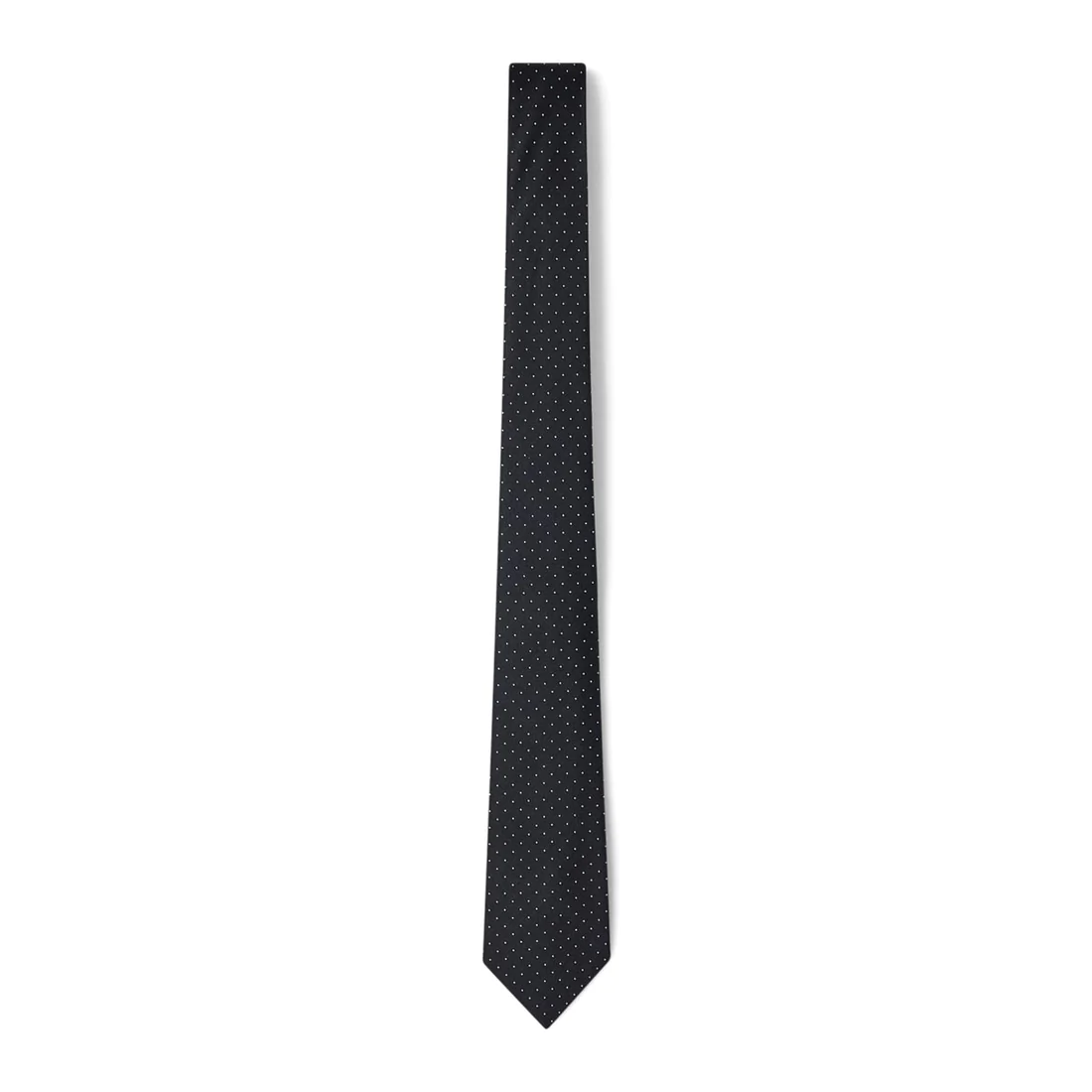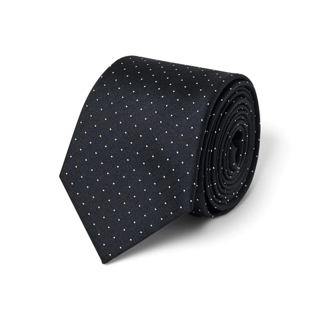 La cravate est l’accessoire que tout homme doit avoir dans sa garde-robe. Elle apportera une touche d’élégance à vos tenues de cérémonies, pour aller travailler ou sans occasion particulière, pour être chic tout simplement ! Facile à nouer et à ajuster, cette cravate en soie noire à pois blancs s’accordera parfaitement à vos tenues.