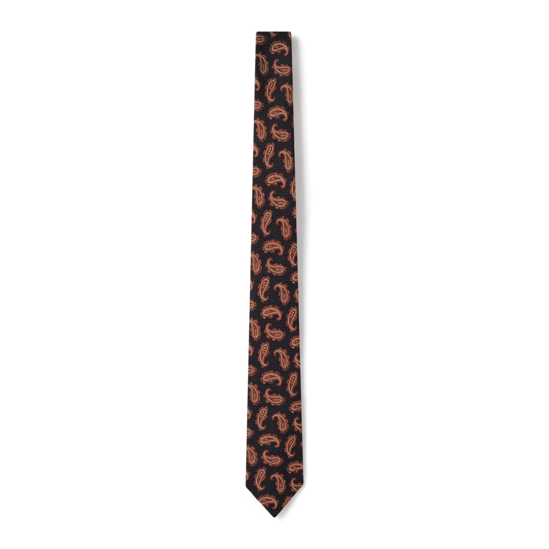 - Cravate à motif Paisley marine et orange.