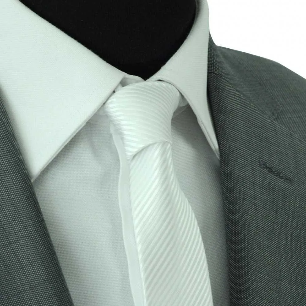 CRAVATE SLIM HOMME. BLANC RAYÉ