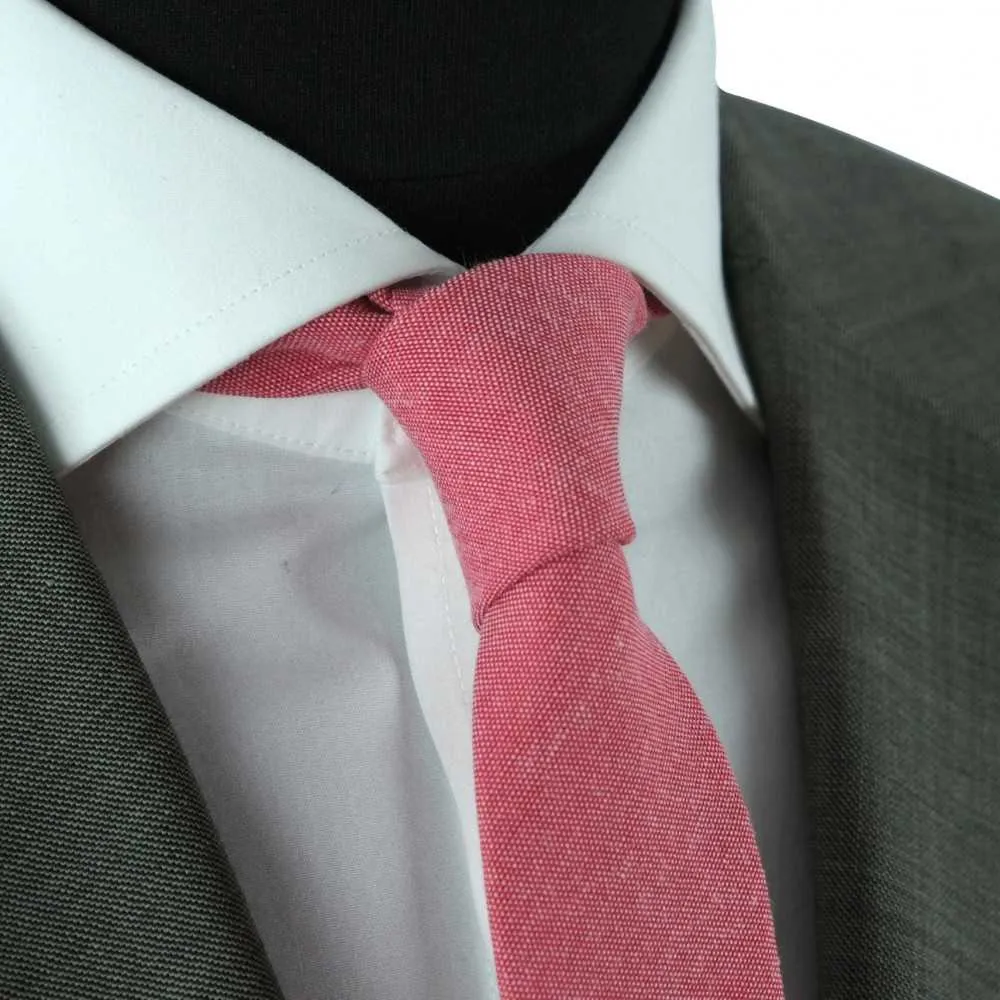 CRAVATE SLIM HOMME COTON/LIN ROUGE PÂLE