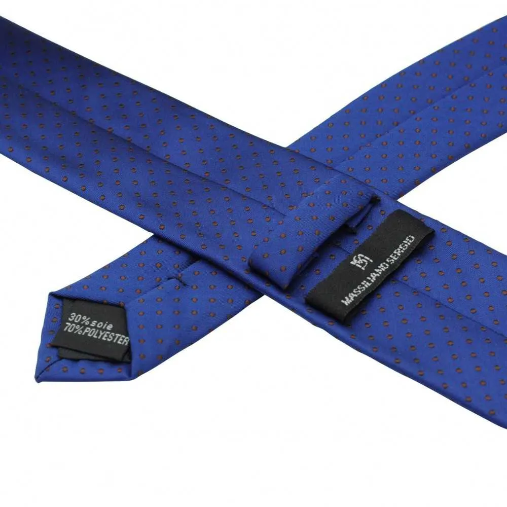 CRAVATE SLIM POUR HOMME BLEU À FINS POIS MARRON