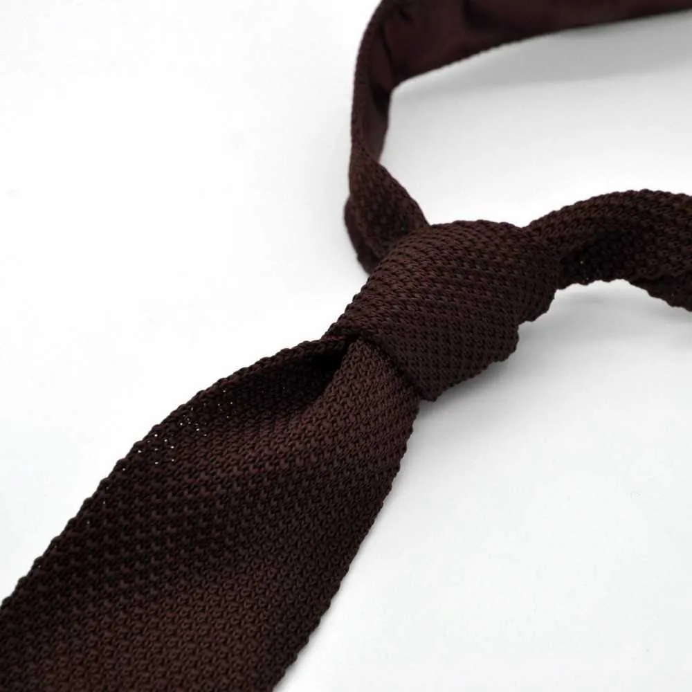 CRAVATE TRICOT POUR HOMME. MARRON FONCÉ UNI. SLIM ET BOUT CARRÉ.