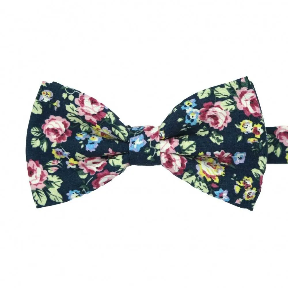 ENSEMBLE NŒUD PAPILLON ET POCHETTE ASSORTIE. STYLE ‘LIBERTY’, BLEU MARINE.