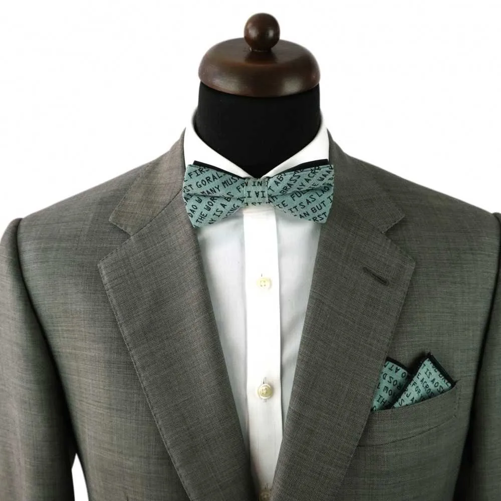 ENSEMBLE NOEUD PAPILLON ET POCHETTE HOMME EN COTON AVEC ÉCRITURE. VERT