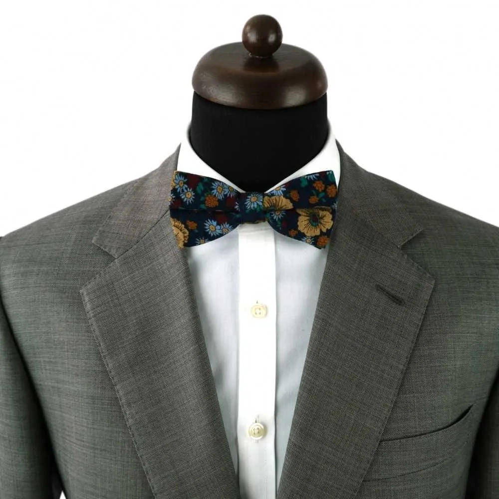 NOEUD PAPILLON À MOTIF FLEURI. BLEU ET BEIGE