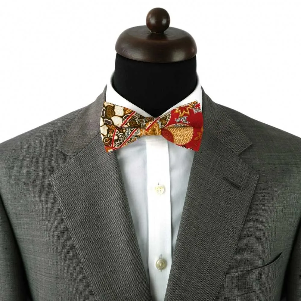 NOEUD PAPILLON À MOTIF FLEURI. MARRON ET ROUGE