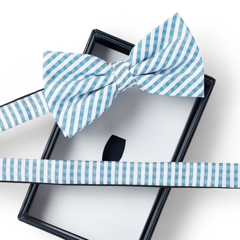 Tendance depuis plusieurs années, le nœud papillon est parfait pour accessoiriser une tenue. Vous pourrez le porter lors de cérémonies, mariages, repas de Noël ou d’anniversaires, cocktails chics… Notre nœud papillon à rayures bleues et blanches sera la touche finale qui apportera beaucoup d’élégance à votre look.