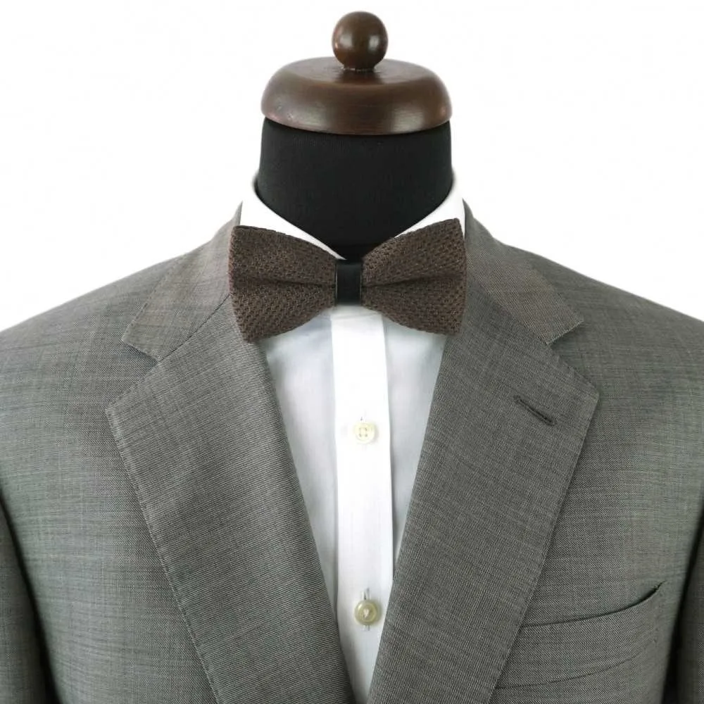 NOEUD PAPILLON À RUBAN EN SIMILI CUIR. MARRON TRICOT
