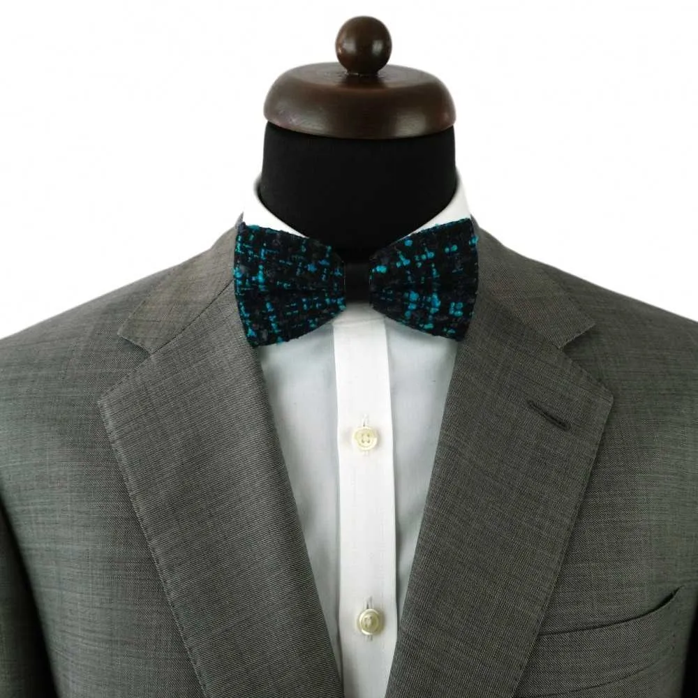 Be the first to review “NOEUD PAPILLON À RUBAN EN SIMILI CUIR. NOIR ET TURQUOISE TWEED”