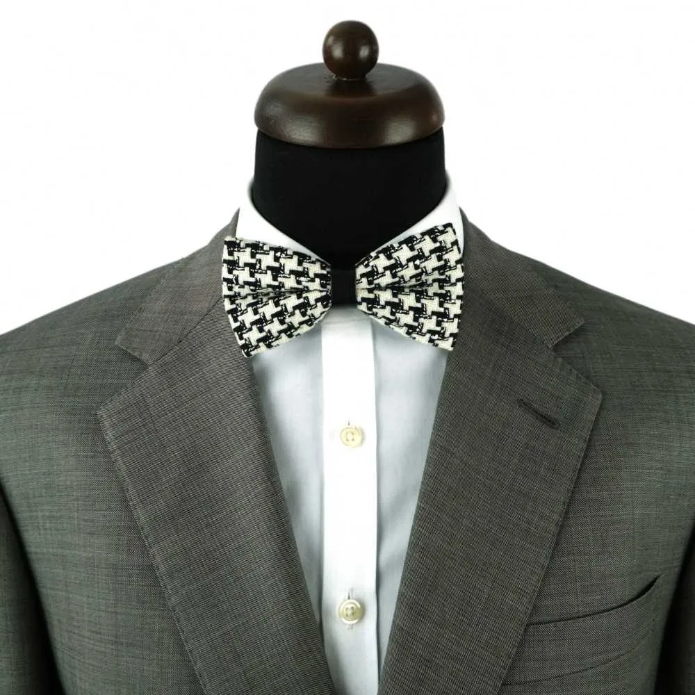 NOEUD PAPILLON EN LAINE. STYLE ET QUALITÉ. NOIR GRAND PIED-DE-POULE