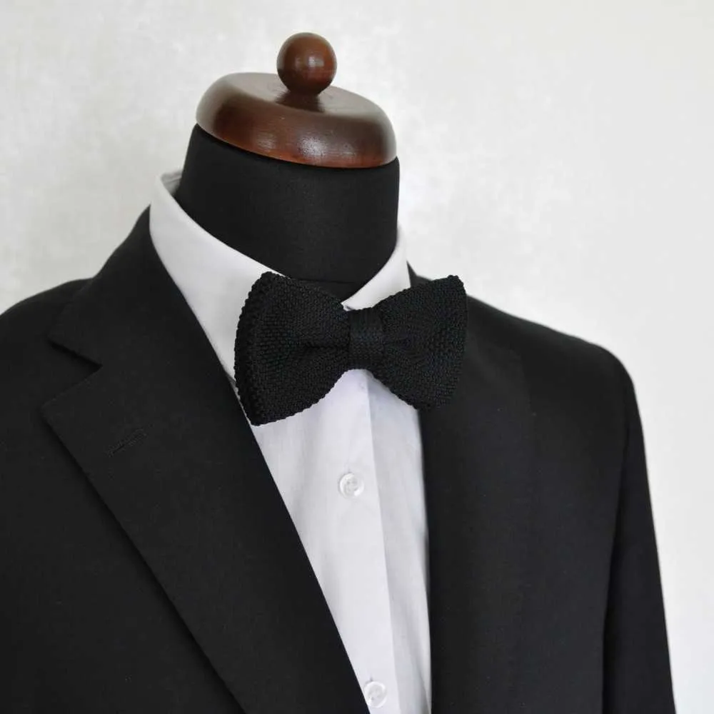 NOEUD PAPILLON EN TRICOT. NOUÉ. NOIR UNI