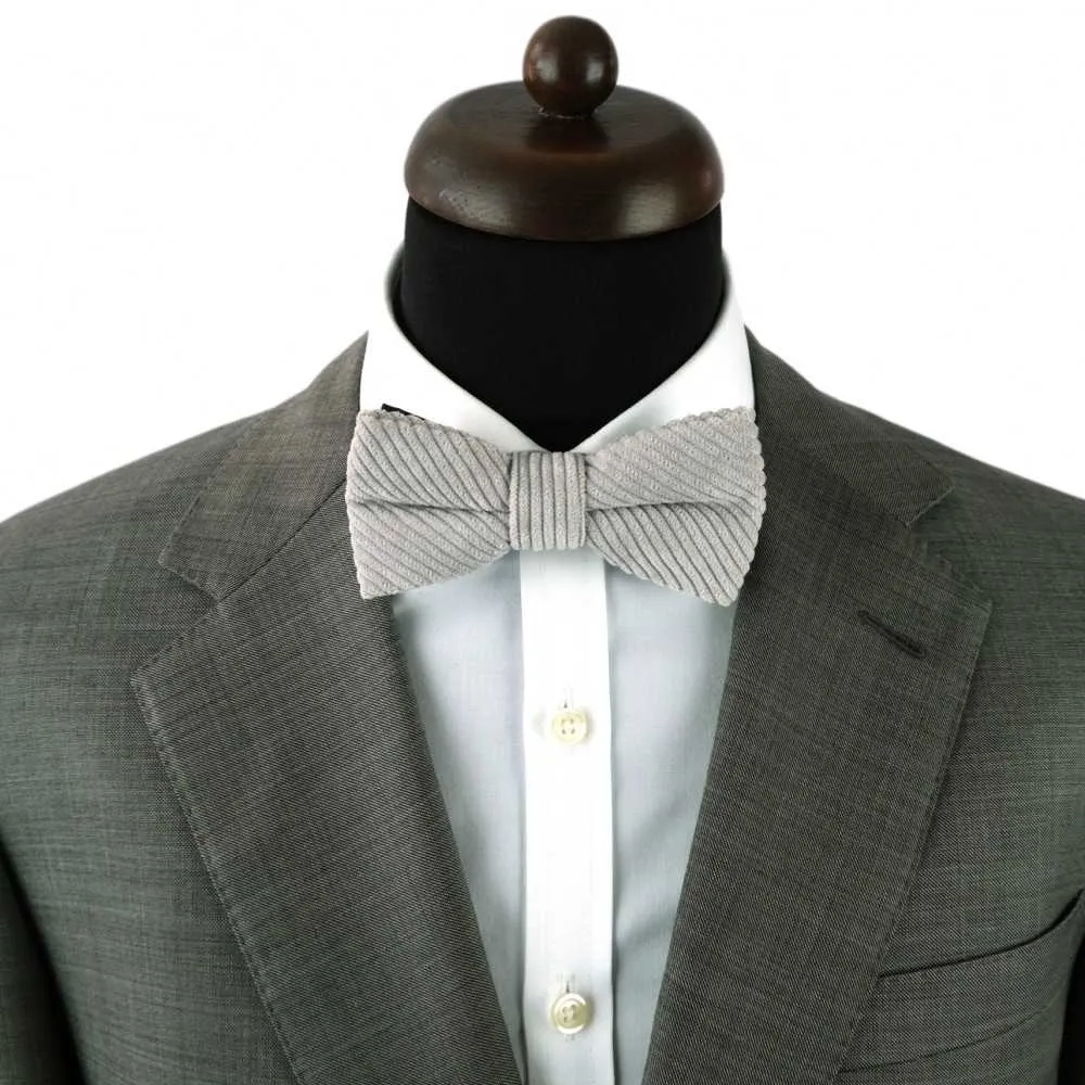 NOEUD PAPILLON EN VELOURS CÔTELÉ (GROSSES CÔTES). GRIS ARGENT