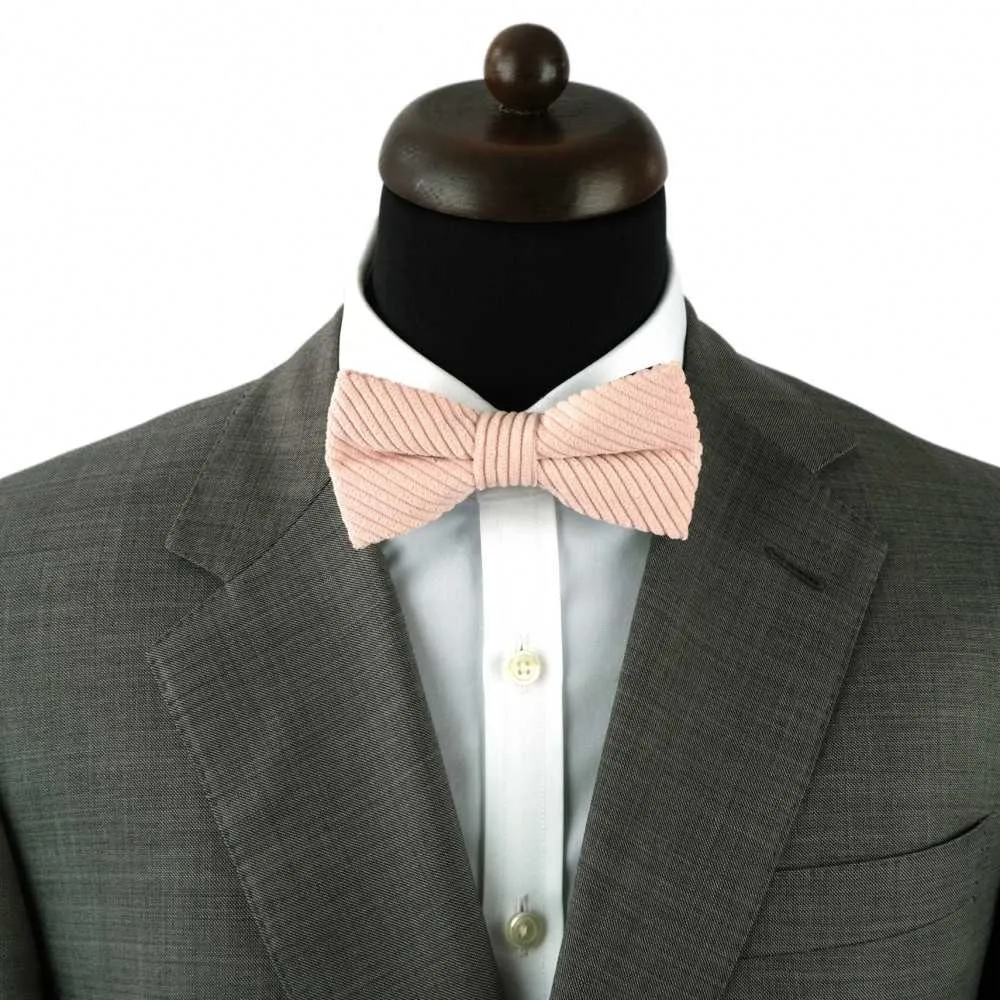 NOEUD PAPILLON EN VELOURS CÔTELÉ (GROSSES CÔTES). ROSE PÂLE