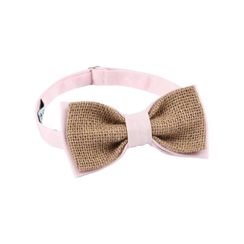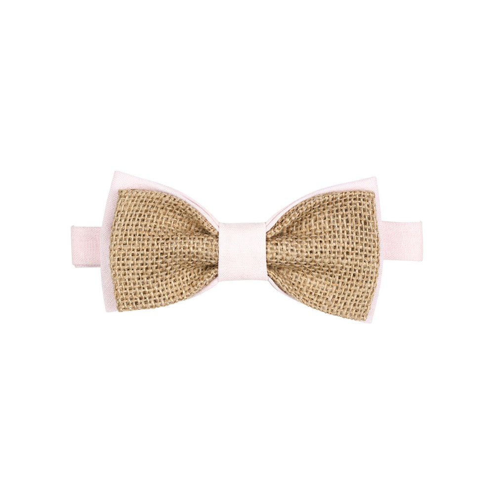 Un noeud papillon homme en toile de jute et coton rose clair.