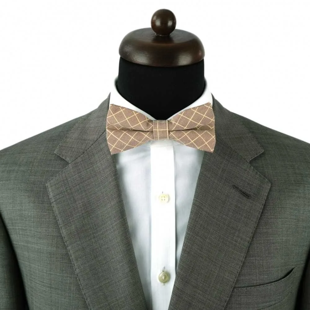 NOEUD PAPILLON PASTEL À FINS CARREAUX. BEIGE