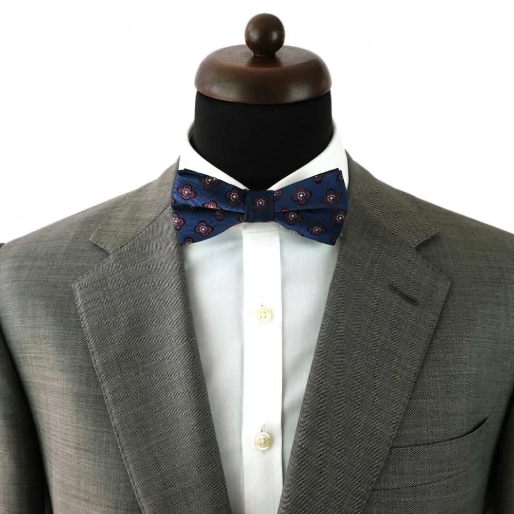 NOEUD PAPILLON POUR HOMME MODE ANGLAISE. BLEU MARINE À MOTIFS FLEURIS